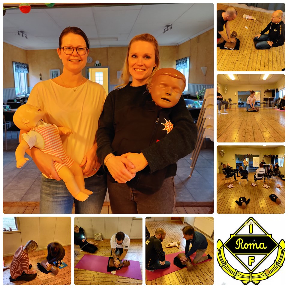 Under lördagen arrangerades HLR-utbildning för alla ledare i Roma IF. Flera pass under dagen. Linda Lövqvist med kollega Johanna höll i trådarna på ett proffsigt och roligt sätt vilket bidrog till att det redan stora intresset blev ännu större hos oss ledarna. Linda brukar säga att "jag kan inget om fotboll men jag vill gärna hjälpa till i föreningen" och med detta visade Linda vad hon kan och vad hon brinner för. Roligt och att vi har många föräldrar som engagerar sig i föreningen på liknande sätt. Det är vår, Roma IFs, styrka. Vår förening vill bygga från grunden och att alla ska få kunna känna sig trygga i sin idrott, ledarskap och gemenskap. Denna utbildning är ett steg mot trygg idrott. HLR ger ledarna lite mer trygghet om olyckan inträffar, föräldrar känner ökad trygghet och i slutänden också såklart barnen/aktiva. Bra jobbat Linda och Johanna och bra jobbat alla ledare. Tack för att ni ger av er tid till föreningens barn! Heja Roma IF! PS, behöver vi påminna om att vi är Årets Idrottsförening? Ja, vi påminner i fall att 😉